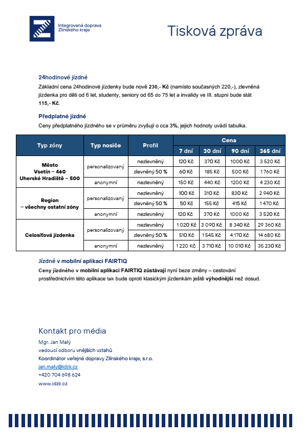 Aktuality z obce - Tisková zpráva - Co nás čeká v Integrované dopravě Zlínského kraje v roce 2026